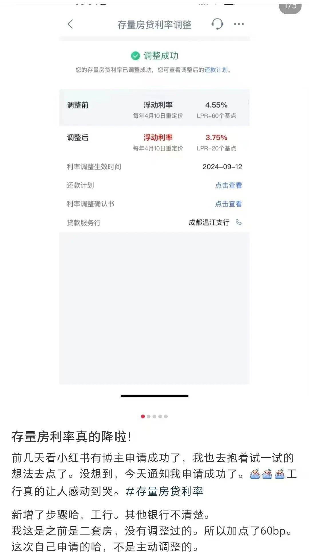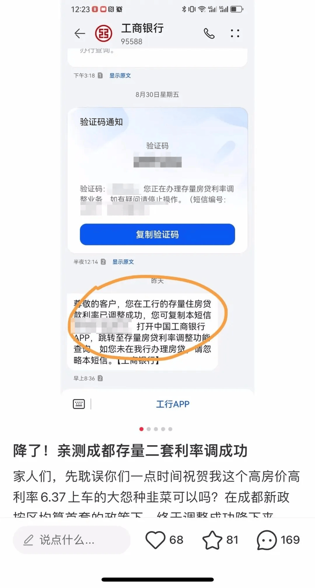 刚好今天也有一些粉丝发了截图给我,表示自己的存量房贷利率成功申请调整。