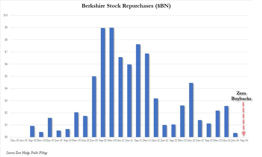 更值得关注的是,伯克希尔在第三季度首次自2018年改变回购政策以来,暂停了对自家股票的回购计划。这一举动似乎表明,即便是自家股票,巴菲特也认为当前价格并不具有吸引力。