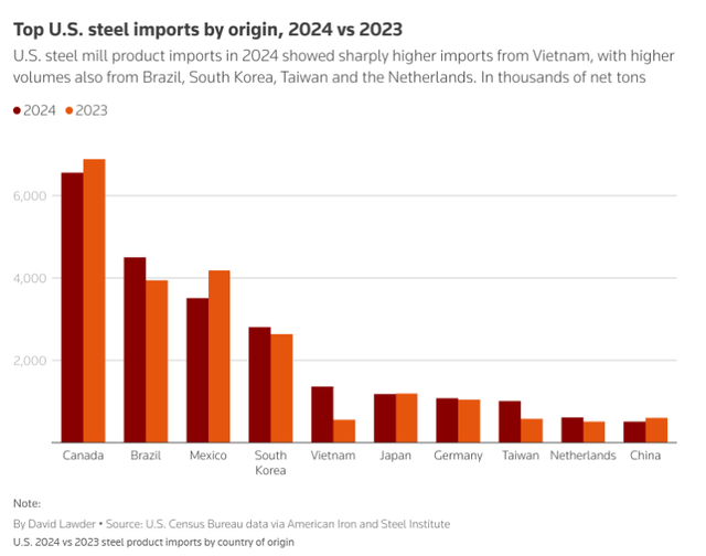 美国第二大钢铁供应国巴西表示,它不会立即进行报复。