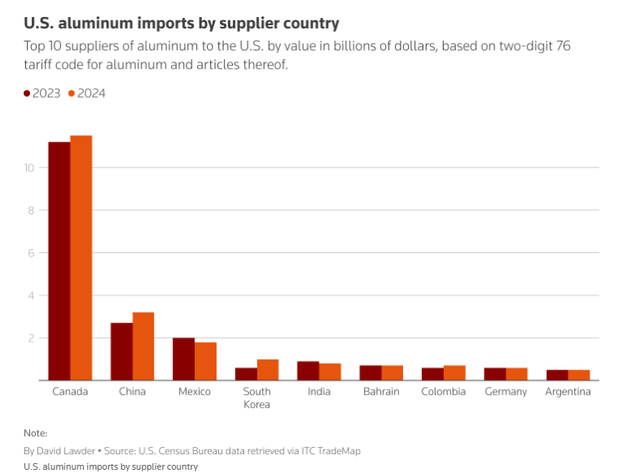 加拿大是美国最大的钢铁和铝的外国供应国,该国宣布对这些金属以及电脑、运动器材和其他总共价值200亿美元的商品征收25%的报复性关税。为了回应特朗普更广泛的关税举措,加拿大此前已经对类似金额的美国商品征收了关税。