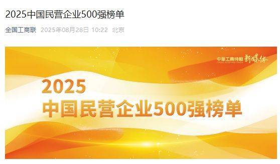 8月28日,全国工商联发布2025中国民营企业500强榜单。结果显示,京东集团、阿里巴巴(中国)有限公司、恒力集团有限公司位居前三。