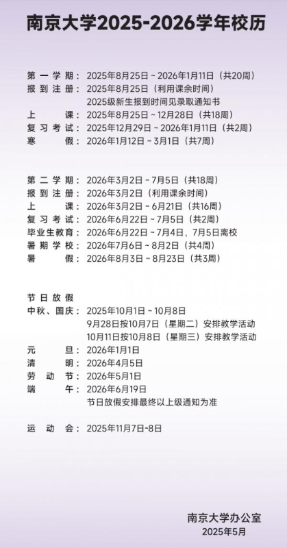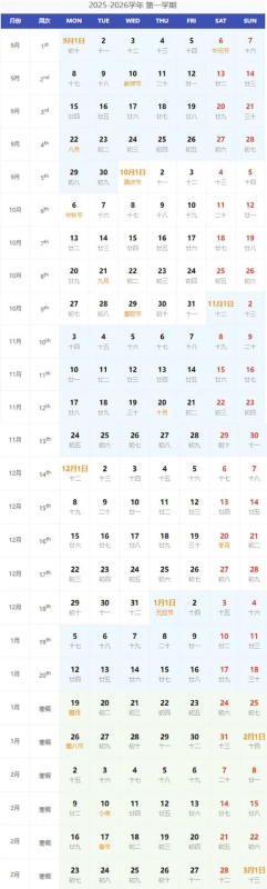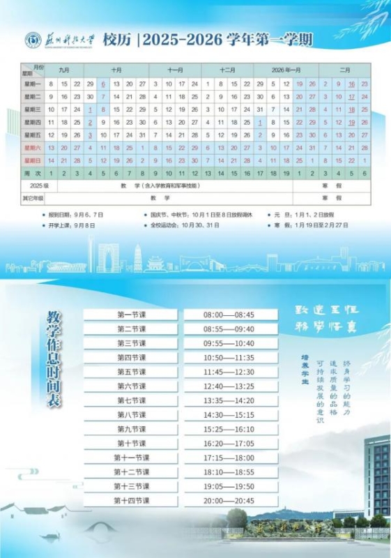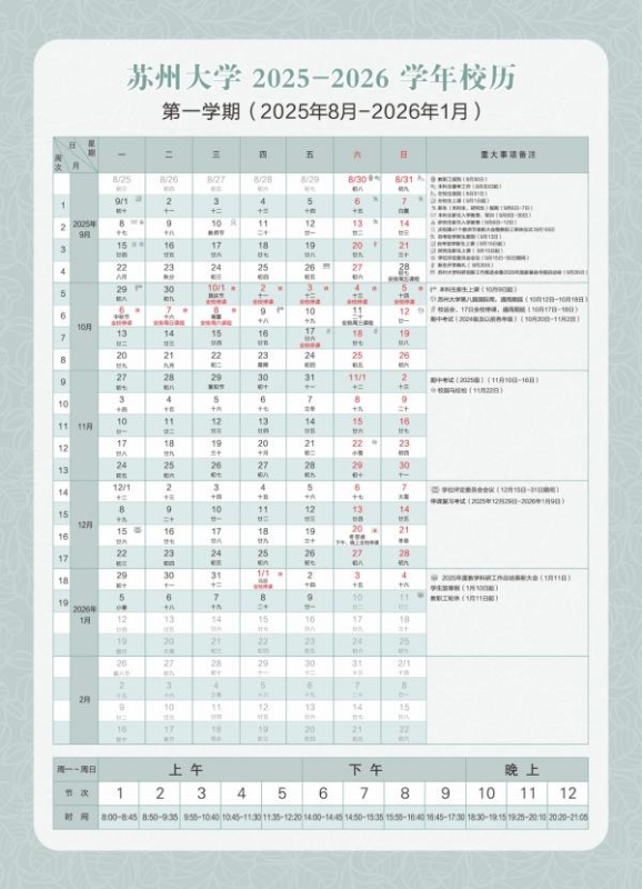 据江苏省2025—2026学年第一学期校历