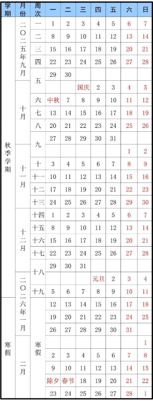 2025级:2026年1月19日—3月1日