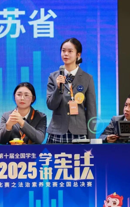 本届法治素养竞赛江苏省代表队由4人组成,其中2人为苏州选手,分别是来自苏州幼儿师范高等专科学校的谭张妍和苏州大学的胡青瑩。
