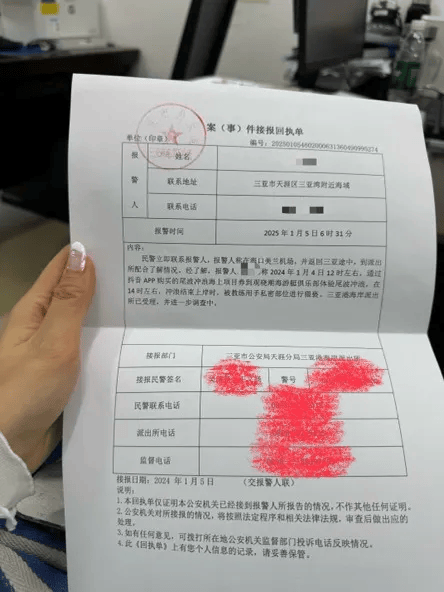 今天,有网友发文称,1月4日在三亚旅游时遭一尾波冲浪俱乐部教练猥亵,该网友表示:“他用手指大力抠抓我的私密部位,持续多次、动作粗暴”。据其提供的案(事)件接报回执单中显示,报警人在1月4日冲浪结束上岸时被教练用手对私密部位进行猥亵。