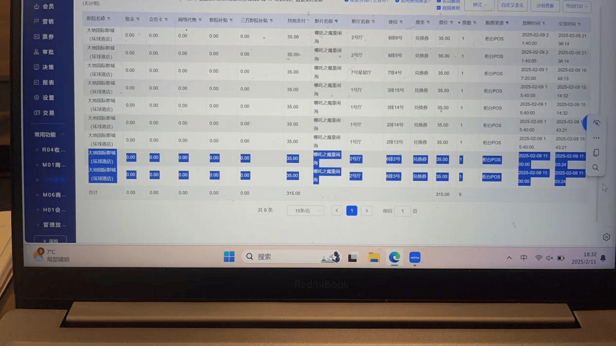 自称大地国际影城(环球港店)店长透露已补录票房。受访者供图