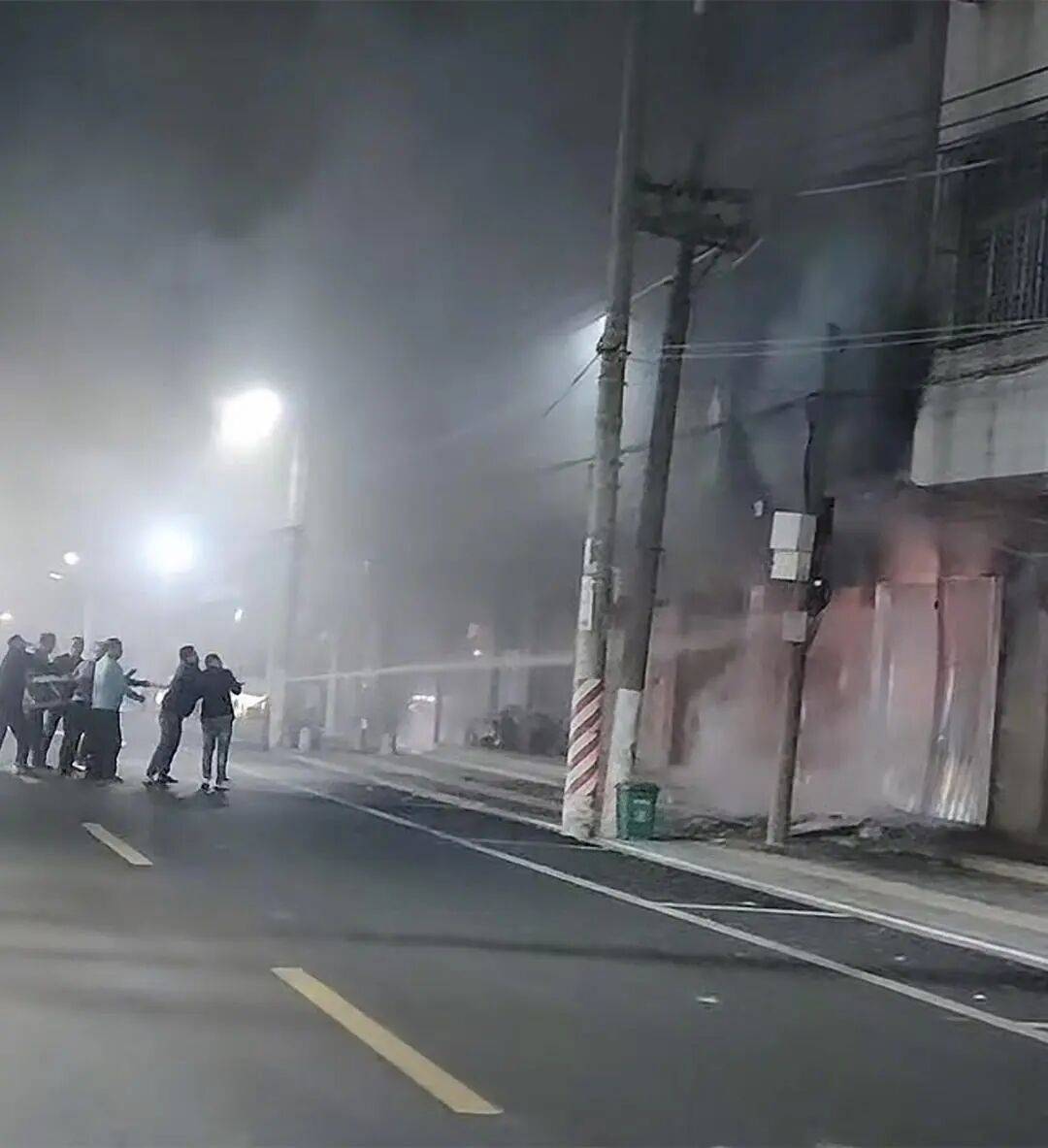 另据红星新闻,有现场视频显示,建筑一楼率先起火,透过窗户可看见一楼五间店面都有明火,浓烟迅速蹿上楼,并伴随有噼里啪啦的声响。另一个视频显示,周边居民发现起火后,从对面第二间商铺拉来消防栓灭火,共有七八人举着消防水管试图扑灭一楼的明火。