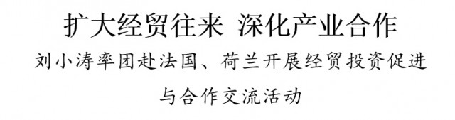 2月22日至27日,省委常委、苏州市委书记刘小涛率团赴法国、荷兰开展经贸投资促进与合作交流活动,深入贯彻落实习近平总书记关于对外开放的重要论述和总书记对江苏、苏州工作重要讲话重要指示精神,扩大经贸往来,深化产业合作,推动互利共赢,努力以高水平开放服务高质量发展。