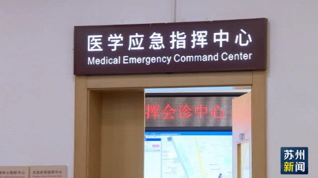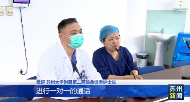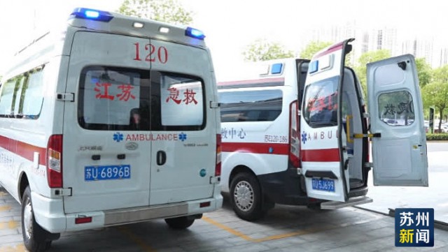 苏州大学附属第二医院急诊室护士长武妍表示,通过这块屏幕也可以看到病人在车上的血压、脉氧和心跳的情况,如果想进一步了解他的情况的时候,可以跟车上的医护人员进行一对一的通话,它有GPS的定位系统,可以告诉这个病人还有大概多久时间能够送达医院,这样子就可以提前启动相应的各个小组。
