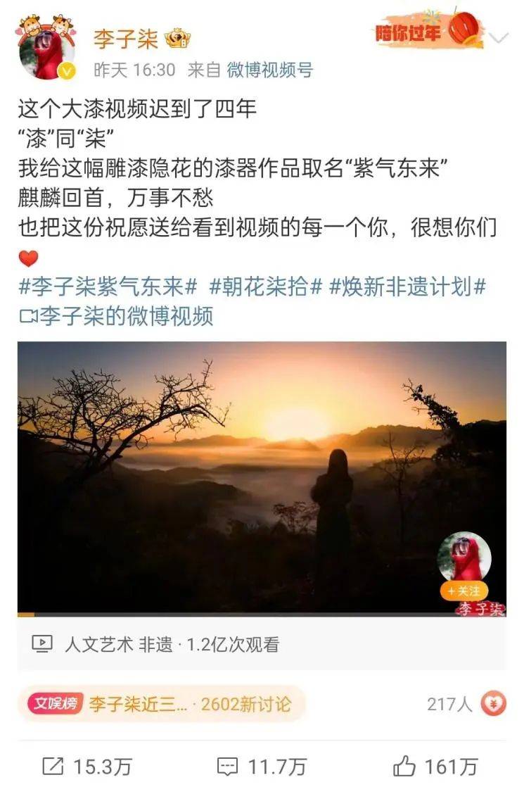 11月12日下午4点30分,李子柒携最新“漆器”非遗作品全网发布,正式宣告复出。此时,距这位现象级网红上一次更新作品的2021年7月14日,已经过去了1217天。