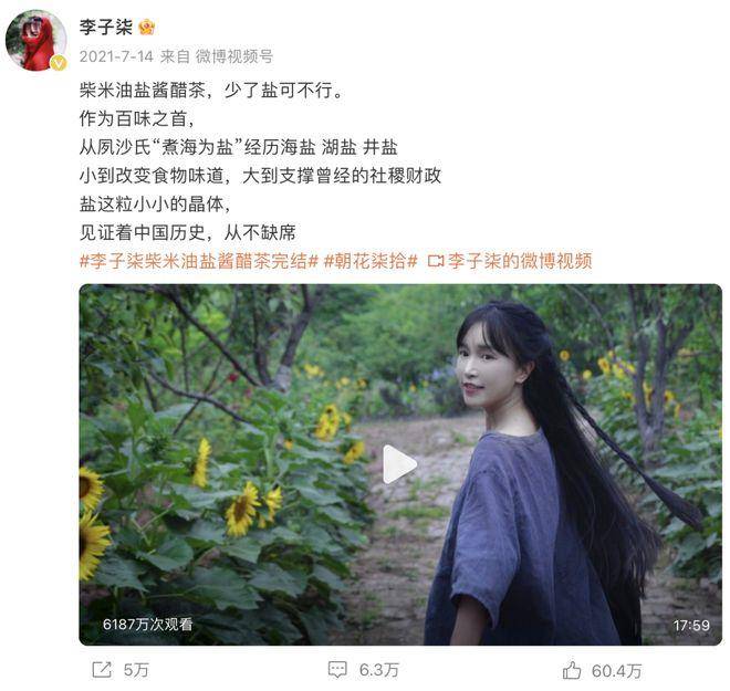此外,在流量推广层面,李子柒也有着自己的平台资源。