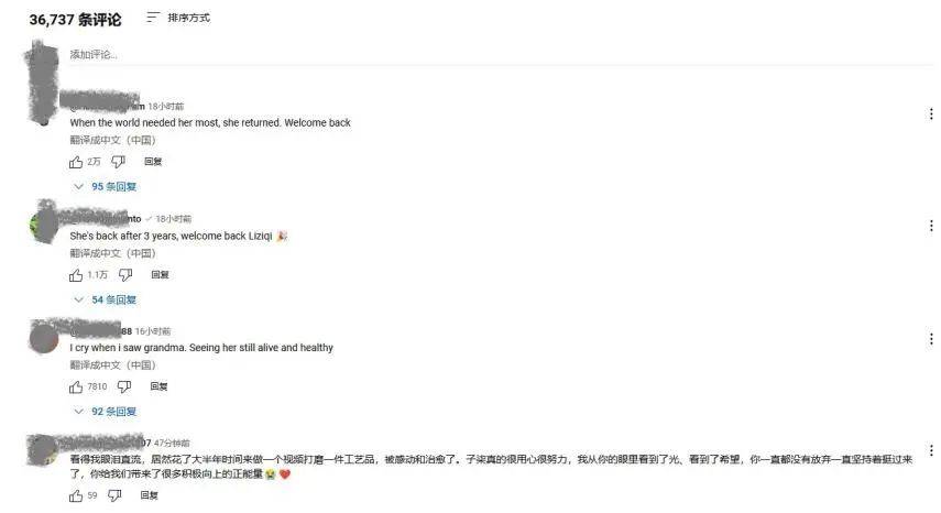 对于李子柒的回归,网络上粉丝们一片激动。其微博评论区点赞第一的回复是“熹妃回宫”,有粉丝表示,在李子柒停更的1217天里“一直都在”。而李子柒庞大的海外粉丝群同样非常兴奋,其YouTube视频下中文、英语、泰语、韩语等各种语言的评论众多,无一不是对李子柒回归的欢迎。
