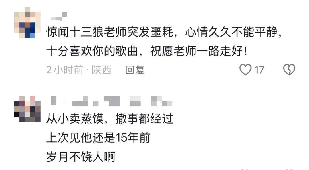 11月28日,陕西广播电视台“吼秦腔”微信公众号发布讣告:中国“秦歌第一人”十三狼(吕小平先生)因突发疾病医治无效,于当天5时30分不幸离世,享年58岁。