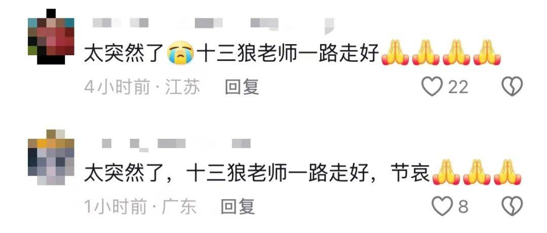 据陕视新闻报道,十三狼的妻子在接受采访时表示, 他是因为突发脑溢血去世的。