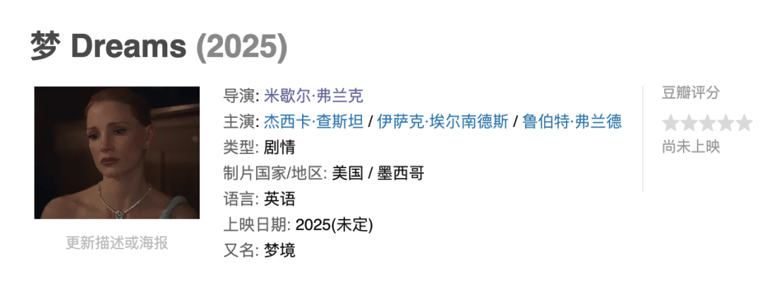 杰西卡·查斯坦也会又一次跟导演米歇尔·弗兰克合作《梦》,不知两人这次又会有什么火花呢?