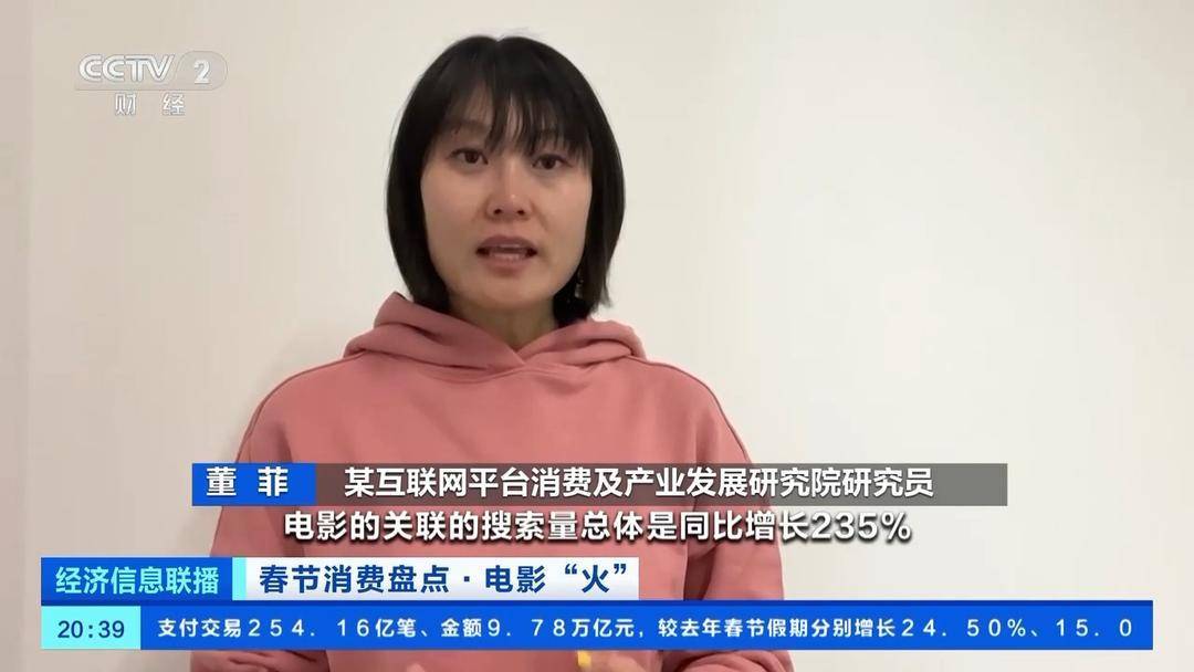 某互联网平台消费及产业发展研究院研究员 董菲:从搜索热度来看,电影关联搜索量总体同比增长235%,关联的产品销量同比增长超5倍,其中哪吒关联产品的销量同比增长超30倍,射雕英雄传相关产品增长超10倍。