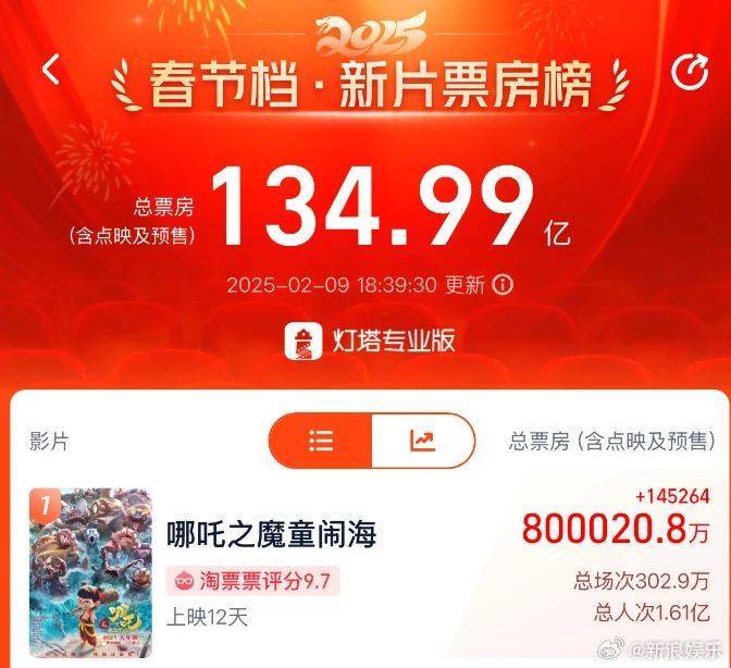 2月9日,截至目前,《哪吒2》票房已超80亿,超越《星球大战9》进入全球影史票房榜前40。